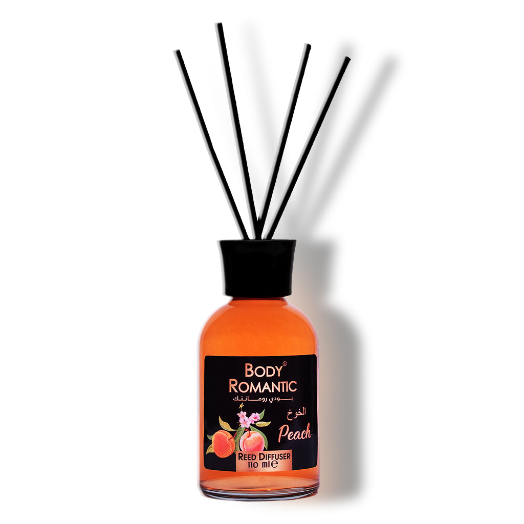Enjoy the sweet and refreshing notes of peach with the Body Romantic diffuser. A perfect formula that adds a touch of warmth and vitality to your space, filling it with a soft, fruity fragrance that lasts.