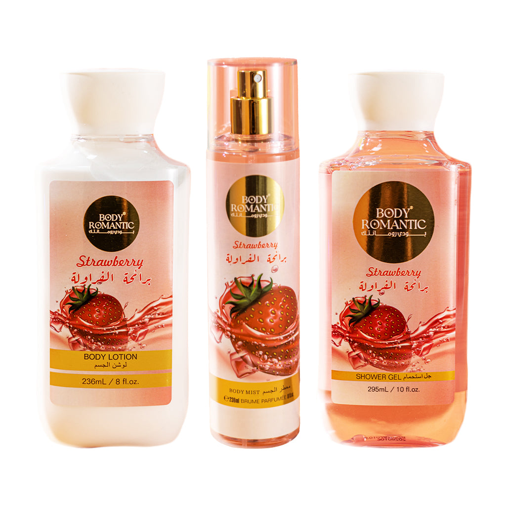 Treat yourself or surprise a loved one with the Body Romantic Gift Box in the refreshing strawberry scent!