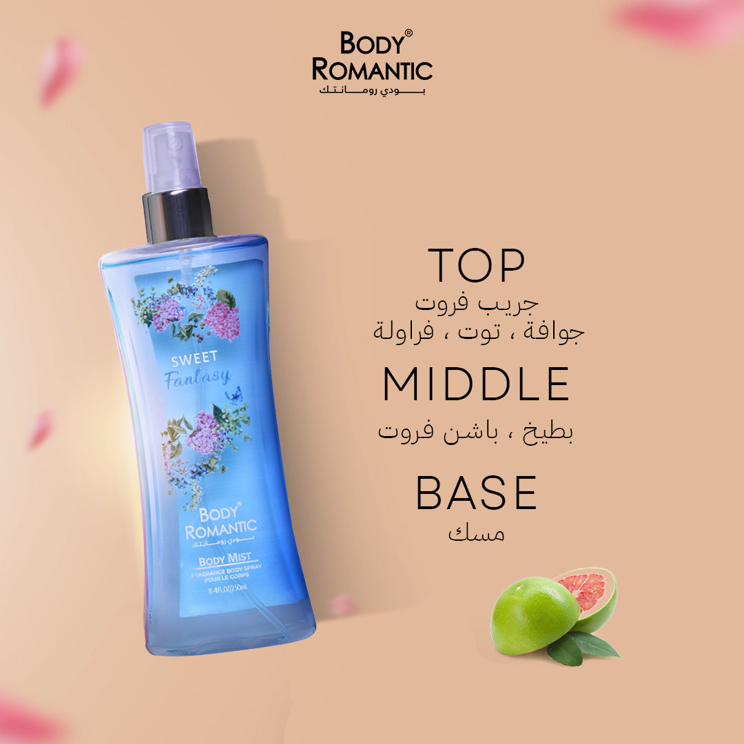 The body mist that blends freshness with sweet fruits in an irresistible fragrance experience. It opens with grapefruit, guava, berries, and strawberry, moves into a juicy heart of watermelon and passion fruit, and finishes with a soft touch of musk.